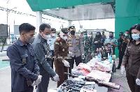 INHIL, TEMBILAHAN - Bupati Indragiri Hilir H. M. Wardan menghadiri pelaksanaan pemusnahan barang bukti untuk tahun 2021 di halaman Kejaksaan Negeri Indragiri Hilir Jalan Prof. M. Yamin No. 05 Tembilahan, Selasa (25/5/2021) Pagi.