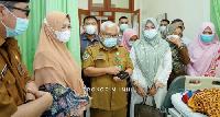 INHIL, TEMBILAHAN, - Hj Zulaikhah Wardan SSos ME menjenguk korban kecelakaan pompong bernama Siti Mardiah di RSUD Puri Husada Tembilahan, Senin (10/5/2021).