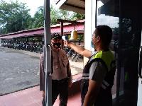 TEMBILAHAN - Meski dihari libur, Polres Inhil tetap ketat menerapkan Protokol Kesehatan (Prokes) bagi personelnya yang melaksanakan dinas dengan melakukan pengukuran suhu tubuh dan sterilisasi.