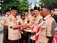 RIAUONE.COM, TEMBILAHAN - Sekretaris Daerah Kabupaten Inhil, H Said Syarifuddin selaku Wakil Ketua Majelis Pembimbing Cabang Gerakan Pramuka Inhil menerima Lencana Melati dari Kwartir Nasional Gerakan Pramuka, Sabtu (18/8/2018) pagi.
