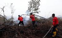 RIAUONE.COM, INHIL - Masyarakat Desa Pekan Tua, Kecamatan Kempas, Indragiri Hilir terus berupaya melakukan pemadaman kebakaran lahan yang terjadi di Dusun Bahagia, Desa Pekan Tua, Jumat (27/9/2018).