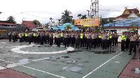 RIAUONE.COM, TEMBILAHAN - Kapolres Indragiri Hilir AKBP Christian Rony, memimpin langsung pelaksanaan apel kesiapan pengamanan malam takbir di halaman Mapolres Indragiri Hilir, Kamis sore, (14/6/2018).