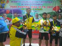 RIAUONE.COM, BANGKINANG – Petenis meja putra Kabupaten Indragiri Hilir (Inhil) Waysa berhasil mengalahkan petenis meja Kabupaten Bengkalis pada laga Partai Final di GOR Bukit Indah, Bangkinang, Minggu (5/11/2017).