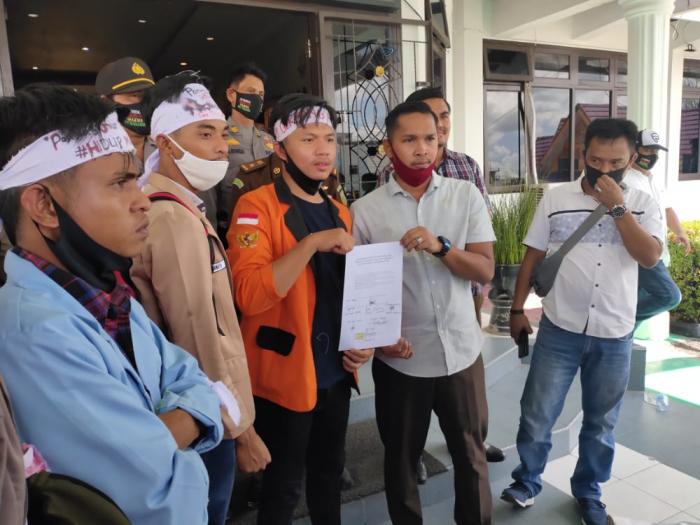 Perwakilan kepala desa yang berasal dari berbagai kecamatan, menggelar aksi unjuk rasa di Kantor Bupati dan Kantor Dewan Perwakilan Rakyat Daerah Inhu.
