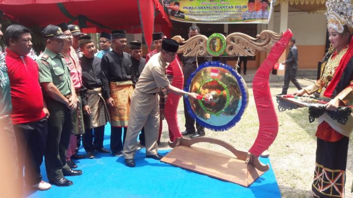 KUANSING,- Bupati Kuansing, H. Mursini menghadiri dan membuka secara resmi Pacu Jalur Tradisional Tepien Lubuok Sobae dalam rangka Hut RI Ke - 73 di halaman Kantor Camat Kuantan Hilir Seberang, Selasa (14/8/2018).