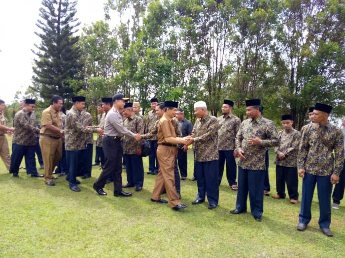 KUANSING,- Sekda Kabupaten Kuantan Singingi DR.Dianto Mampanini,SE.MT menyampaikan pesan Bupati Kuansing saat melepas 90 orang peserta Musabaqah Tilawatil Quran (MTQ) 2018 ke 37 Tingkat Provinsi Riau, di Halaman Kantor Bupati, Selasa (11/12/2018).