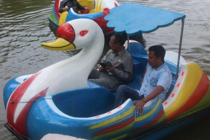 " Pak Bupati tadi usai membuka secara resmi Musrenbang, lansung meresmikan objek wisata embung air sejuk desa Perhentian luas, bahkan pak Bupati sangat mengapresiasi upaya- upaya inovasi desa, beliau lansung menaiki perahu motor bebek air yang telah disediakan di lokasi tersebut, dan beberapa orang pejabat lainnya," ucap camat LTD.