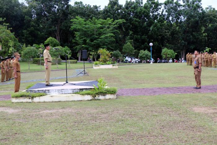 Upacara perdana setelah usai liburan Idul Fitri, menjadi momen bagi Bupati H Mursini menegaskan kepada seluruh ASN di lingkungan Pemerintah Daerah Kuansing untuk selalu meningkatkan kinerja, sekaligus bermaaf maafan.
