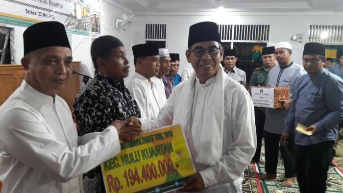 Dalam kunjungan safari Ramadhan Pemda Kuansing di Kecamatan Hulu Kuantan, Bupati H Mursini menyerahkan bantuan untuk empat mesjid di Kecamatan Hulu Kuantan, di tambah dari BAZNAS sebesar Rp194.400.000,- untuk masyarakat Kecamatan Hulu Kuantan, " ujar kepala Desa Sungai Alah.