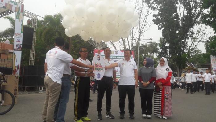 Acara dilanjutkan dengan gerak jalan santai mengitari kota Teluk Kuantan yang diikuti oleh Bupati Mursini, Wabup Halim, Kapolres AKBP M. Mustofa, Forkopimda dan seluruh peserta yang hadir. Acara terakhir adalah pencabutan undian doorprize gerak jalan santai sebagai penutup acara. (roc/*)
