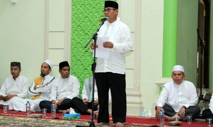 KUANSING,- Mengiringi nuansa kebahagiaan dalam rangka menyambut bulan suci ramadhan 1439 Hijriyah dengan penuh syukur, Bupati Kuansing Drs. H. Mursini, M.Si mengajak seluruh umat Islam di Kecamatan Singingi khususnya untuk memperbanyak amal ibadah dan menghidupkan masjid, seperti ibadah tarawih di masjid dan mushola, serta tadarus Al-Quran.