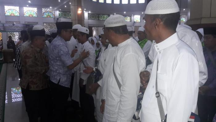 Bupati Mursini menyampaikan kepada seluruh jemaah haji Kuantan Singingi setelah menyandang predikat haji hendaknya lebih meningkat kualitas ibadahnya dan meninggalkan segala perbuatan yang dilarang agama.