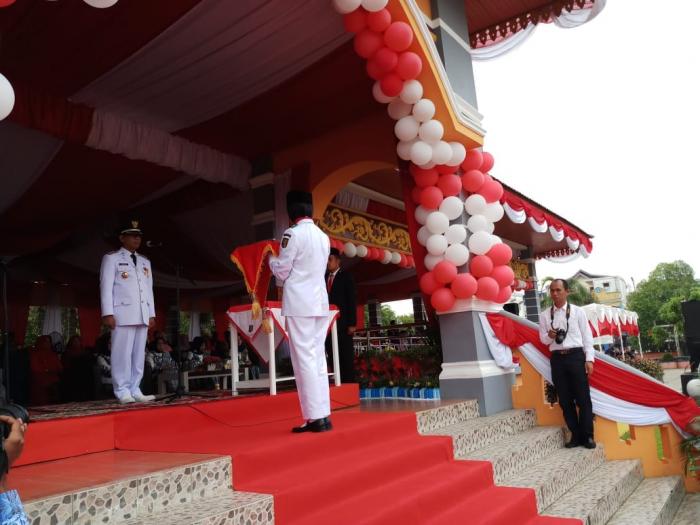 KUANSING,- Bupati Kuansing Drs.H Mursini,M.Si Pimpin Upacara Hari Ulang Tahun Republik Indonesia ke 73 di Lapangan Limuno Teluk Kuantan.
