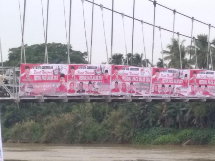 Jembatan Gantung Teluk Kuantan Dipenuhi spanduk Ketua DPC PDIP Kuansing