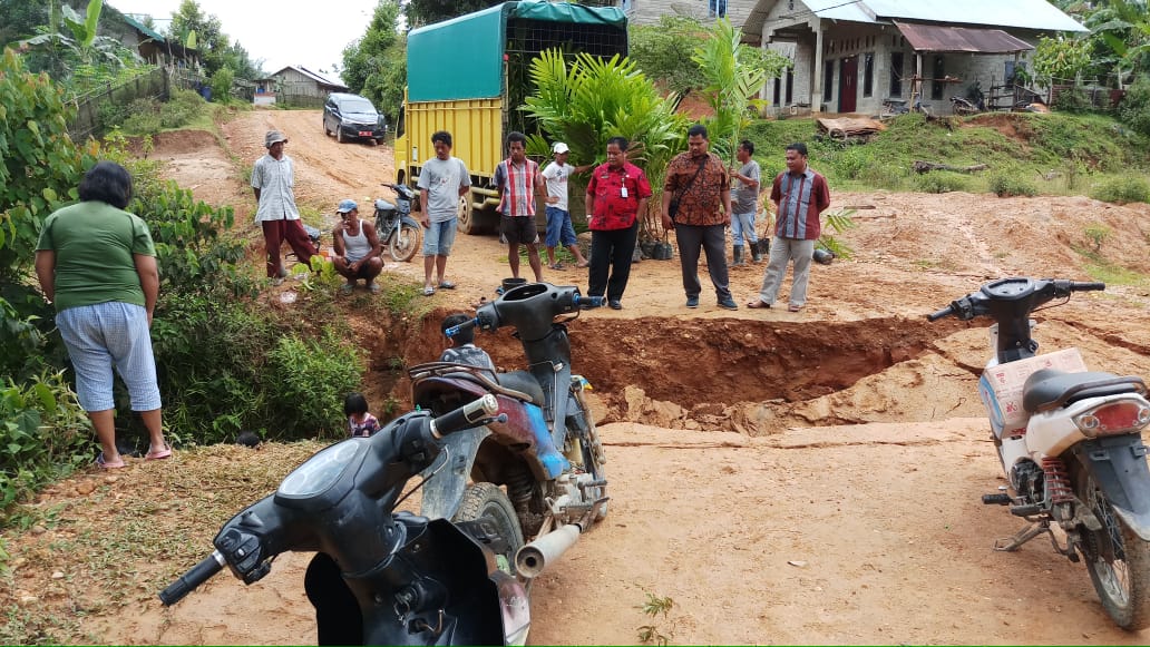 Foto : Kasi pembangunan dan peningkatan jalan dan Jembatan dinas PU Kuansing Yulhendri,ST sedang meninjau jalan Amblas.
