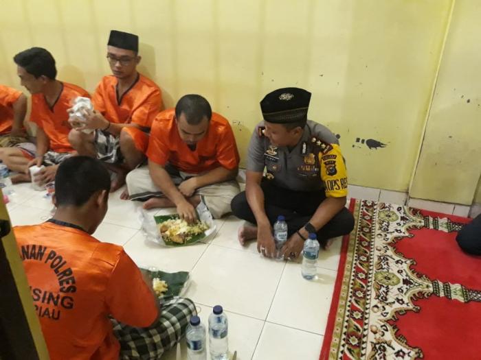 Kapolres Kuansing Buka Puasa bersama Tahanan di ruang Tahanan Mapolres