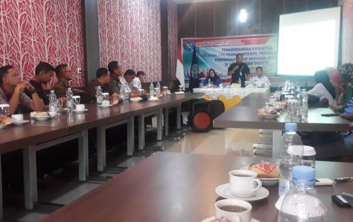 KUANSING,- Badan Narkotika Nasional Kabupaten (BNNK) Kuansing taja kegiatan Workshop Pengembangan kapasitas pencegahan dan pemberantasan, penyalahgunaan, peredaran gelap narkoba (P4GN) dengan menggandeng pihak swasta yang ada di Teluk Kuantan di Ruangan Meeting RM Sederhana Teluk Kuantan Rabu (15/8/2018).