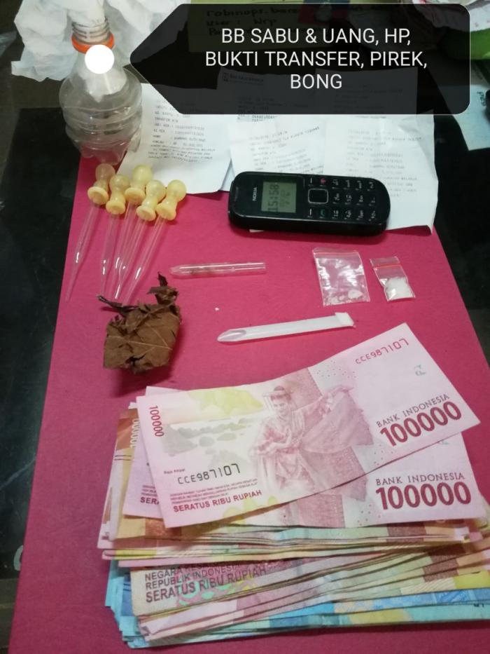 Dengan Sigap Tim Opsnal Polres Kuansing lansung melakukan pengamanan terhadap pelaku, berinisial ISN saat itu Sabtu (7/7/2018) pukul 11.30 wib di Desa Seberang Taluk, bersama barang bukti 2 paket kecil dalam plastik klip merah berat kotor 0.94 gr dibungkus dengan daun kering berisi kristal diduga Narkotika jenis sabu, 1 unit Handphone Merk Nokia warna Hitam, 5 buah kaca Pirex, 1 kaca pirek bekas dipakai yang masih berisi serpihan kristal diduga sabu, 1 alat Hisap Sabu, Uang tunai sebesar Rp 3.350.000, 1 helai kain handuk kecil yg digunakan untuk penutup kepala.