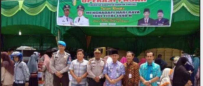 KUANSING RIAUONE.COM, - Pemerintah Daerah Kuantan Singingi melalui Dinas Koperasi, UKM, Perdagangan dan Perindustrian bekerjasama dengan Bulog, Indoomaret Pekanbaru, pengusaha telur dari Sumatera Barat dan KUD Langgeng menggelar operasi pasar, Kamis (16/05/2019).