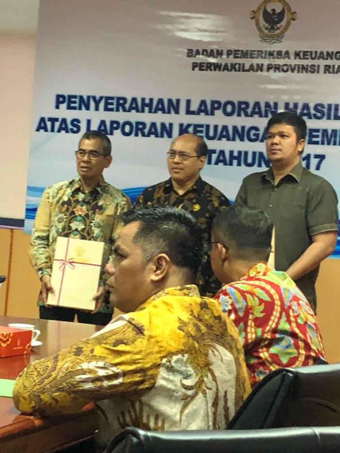 PEKANBARU - Pemerintah Kabupaten Kuantan Singingi kembali mendapatkan predikat Wajar Tanpa Pengecualian (WTP) atas Laporan Hasil Pemeriksaan (LHP) Keuangan Pemkab Kuansing tahun 2017 dari BPK RI Provinsi Riau.