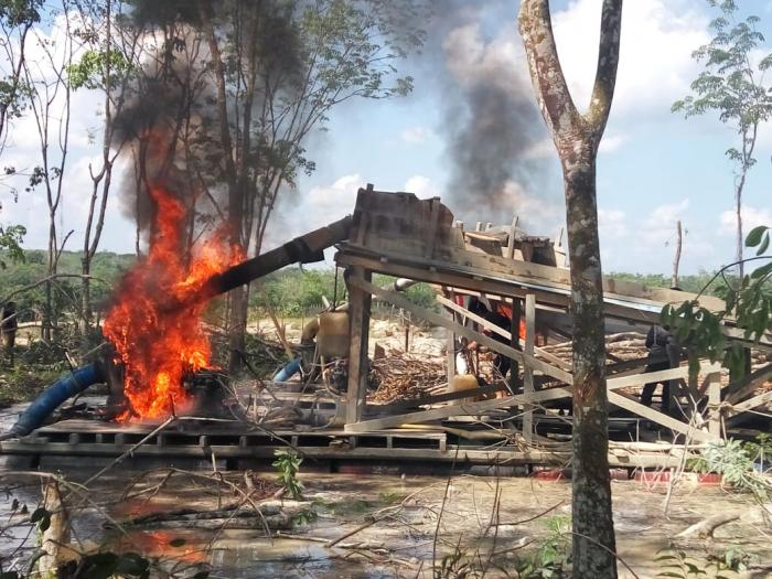 Sedikitnya ditemukan empat unit rakit PETI yang sedang beroperasi saat itu lansung dimusnahkan dengan cara dibakar, para pekerja berhasil melarikan diri setelah diketahui kedatangan aparat kepolisian ke lokasi penambangan.