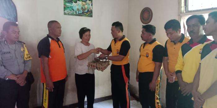 Salah seorang warga Desa Ipong yang tinggal di desa kampung baru Kecamatan Cerenti menerima sumbangan sukarela secara lansung yang sebelumnya telah kumpulkan dari masing - masing personil Polsek Cerenti yang dipimpin oleh Kapolsek Cerenti AKP G. Lumban Toruan.