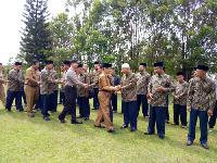 KUANSING,- Bupati Kuantan Singingi Drs H Mursini,M.Si memimpin upacara peringatan Hari Ulang Tahun (HUT) Korps Pegawai Republik Indonesia (Korpri) ke-47 dan HUT Persatuan Guru Republik Indonesia (PGRI) dan Hari Guru Tahun 2018 Jumat (30/11/2018).