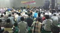 KUANSING, - Andi Putra,SH MH Ketua DPRD Kuansing, ikut menyatu dalam kerumunan masyarakat Inuman yang bergembira saat pagelaran hiburan randai pada acara syukuran Jalur Jitu Kuantan, (3/9/2017), Minggu malam.
