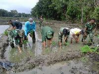 Jajaran Koramil 02/Kuantan Tengah melaksanakan tanam padi perdana di Lahan Pertanian Kampungbaru Sentajo Kecamatan Kuantan Tengah, Kabupaten Kuantan Singingi (Kuansing), Riau, Kamis (17/12).