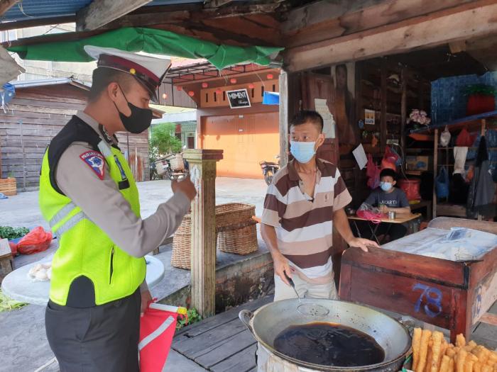 MERANTI, riauone.com - Tidak hanya tim gabungan dan Satgas Covid-19 Kabupaten Kepulauan Meranti, Riau, polisi lalulintas Polres setempat ikut ambil andil dalam mengampanyekan disiplin protokol kesehatan (prokes) kepada masyarakat.