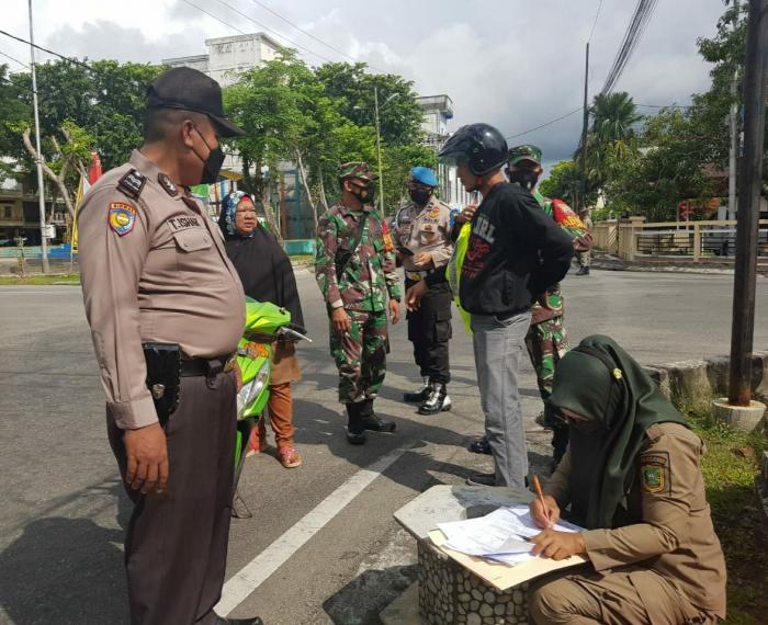 Seperti halnya pada Selasa (2/11/2021) pagi, tim gabungan dari personel Polres Kepulauan Meranti, Polsek Tebing Tinggi, Koramil 02 Tebing Tinggi, Dinas Kesehatan, Satpol PP, dan Dinas Perhubungan melakukan razia penegakan hukum Prokes di simpang jalan Merdeka dan Jl Teuku Umar Kelurahan Selatpanjang Kota, Kecamatan Tebing Tinggi.