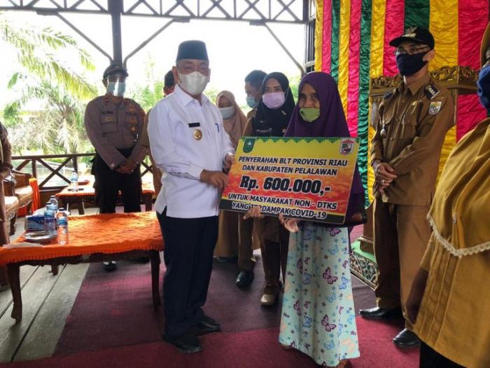 Untuk memenuhi kebutuhan ekonomi masyarakat yang terdampak akibat virus corona. Pemerintah Kabupaten Pelalawan menyalurkan bantuan kepada masyarakat berupa Bantuan Sosial pangan (BSP) dan Bantuan Lansung Tunai (BLT).