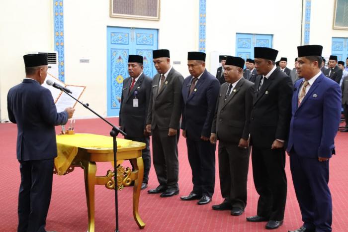 Pelalawan - Pemerintah Kabupaten (Pemkab) Pelalawan melakukan Pelantikan dan Pengukuhan Jabatan Pimpinan Tinggi Pratama, Jabatan Administrator dan Jabatan Pengawas di Gedung Daerah Datuk Laksemana Mangkudiraja, Pangkalan Kerinci, Jumat (3/1) sore.