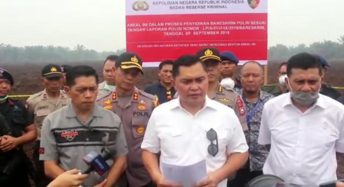 Didampingi Direktur reserse kriminal khusus (Dirreskrimsus) Polda Riau AKBP Andri Sudarmadi dan jajarannya, serta Kapolres Pelalawan AKBP Kaswandi Irwan, Direktur Tindak Pidana Tertentu (Tipiter) Bareskrim Mabes Polri Brigjen Muhammad Fadil Imran meninjau lahan PT Adei Plantation yang terbakar, Jum'at (20/09) di Pelalawan Riau.