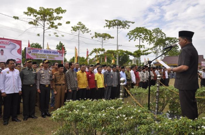 Pelalawan - Polres Pelalawan menggelar Deklarasi Damai Pemilu 2019 untuk memenuhi amanat dari undang-undang sehingga tidak ada konflik maupun perpecahan selama pesta demokrasi Pemilu 2019 berlangsung (Senin,3/9/18)