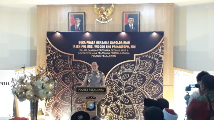 PELALAWAN, - Kapolda Riau Irjen Pol Drs Widodo Eko Prihastopo MM meresmikan Gedung SPKT dan Launching Mall Pelayanan Parama Satwika Polres Pelalawan, Rabu (15/05) di Mapolres Pelalawan Pangkalan Kerinci.
