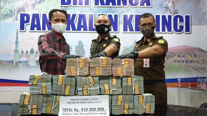 "Dari total Uang Pengganti atas kasus ini kami menghitung totalnya sebesar Rp 926.687.600. Beberapa hari yang lalu telah disetor sebesar Rp 500.000.000, hari ini kembali disetorkan sebesar Rp 350.000.000, sehingga Uang Pengganti dari tindak pidana korupsi ini telah kami selamatkan sebesar Rp. 850.000.000," kata Andre.
