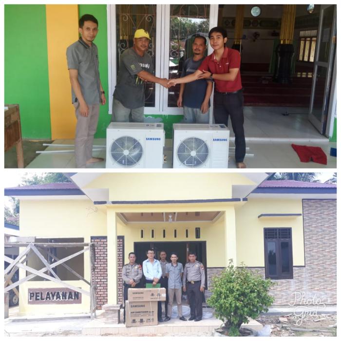 PELALAWAN - Sebagai bentuk kepedulian sosial dan menjaga hubungan yang baik perusahaan dengan masyarakat, PT Agritasari dan PT Mitrasari Prima yang berlokasi di Kecamatan Langgam Kabupaten Pelalawan memberikan bantuan alat pendingin ruangan atau AC kepada Polsek Langgam dan Masjid Inayah Desa Segati, Kamis (16/05/2019).