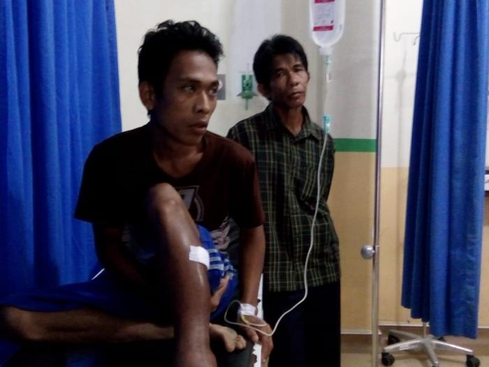 Ketika riauone.com menemuinya di RS Selasih, Rabu (15/08/2018) terlihat pembengkakan di kaki yang diakibatkan tertusuk duri pelepah kelapa sawit saat bekerja memanen buah kelapa sawit di perusahaan PT BSP tempat dia bekerja.