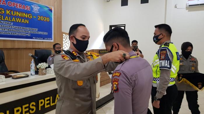 Kapolres Pelalawan AKBP Indra Wijatmiko SIK melalui kasat lantas AKP Teguh Wiyono SH MH memerintahkan kepada seluruh personil operasi untuk tetap menjaga kesehatan dan mematuhi protokol kesehatan dimasa adaptasi kebiasaan Baru selama pelaksanaan operasi patuh Lancang kuning 2020.