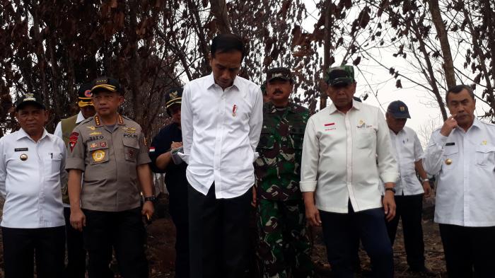 Didampingi Menkopolhukam Wiranto, Menteri LHK Siti Nurbaya, Panglima TNI Marsekal Hadi Tjahjanto, Kapolri Jenderal Tito Karnavian, Presiden langsung menuju lokasi Karhutla yang terbakar sudah lebih dari satu bulan dan merupakan lahan gambut dalam.