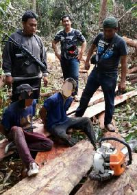 PANGKALANKERINCI, - Kepolisian Resort (Polres) Pelalawan kembali mengamankan 2 orang pelaku ilegal logging di hutan lindung Suaka Margasatwa Kecamatan Kerumutan Kabupaten Pelalawan Riau, Kamis (09/03/2017). Dari tangan pelaku berhasil diamankan 10 kubik k