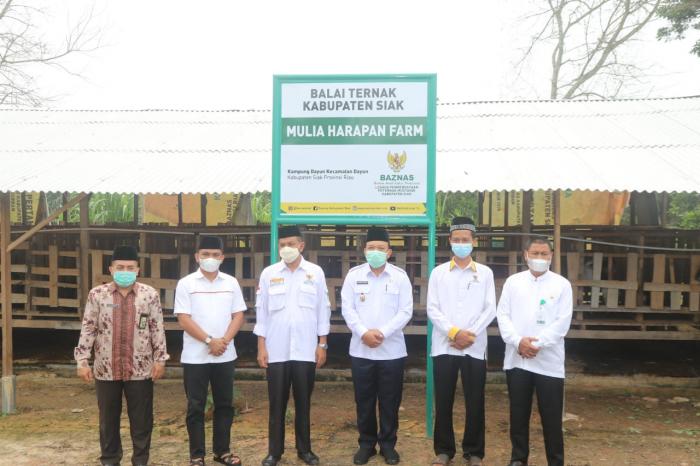 Selanjutnya Wabup Siak husni merza beserta pengurus UPZ kabupaten meninjau rumah layak huni dan balai ternak BAZNAS Lembaga Pemberdayaan Peternak Mustahik Kabupaten Siak Mulia Harapan Farm.
