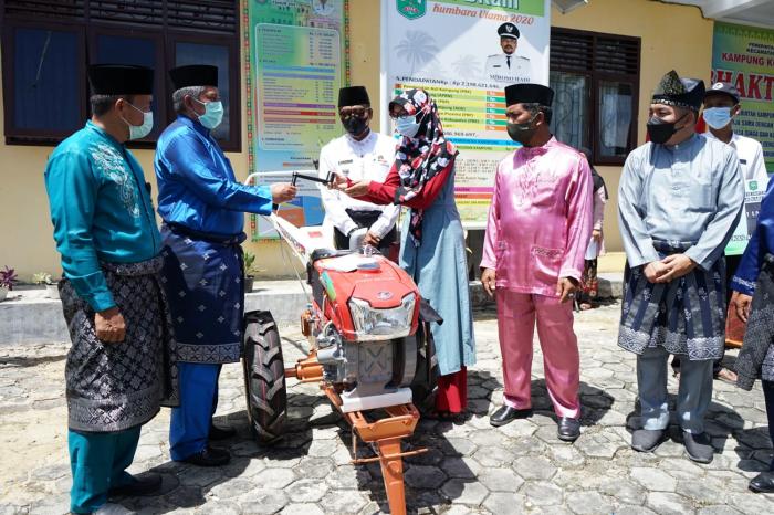 "Tadi saya menyerahkan satu unit traktor tangan, ini bisa di gunakan mempermudah mengolah tanah. Disini usulan program umkm tanamnya pepaya, silakan ditanam,"pintanya.