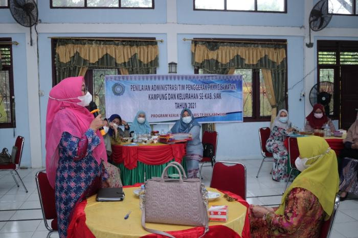 Hal tersebut disampaikan oleh Ketua TP PKK Kabupaten Siak Rasidah Alfedri dalam kegiatan Penilaian Administrasi TP PKK Kecamatan, Kampung dan Kelurahan se Kabupaten Siak, di aula kantor Camat Siak, Jum'at (29/7/2021).