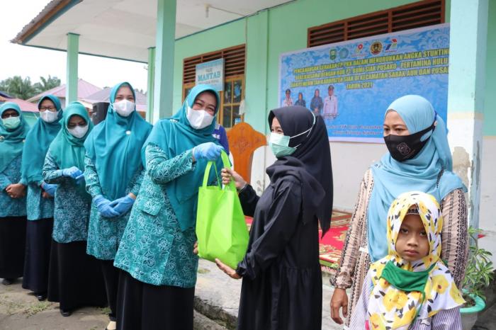 RIAUONE.COM,SIAK- TP PKK Kabupaten Siak action langsung menyerahkan bantuan PMT untuk 82 balita dan batita serta 14 ibu hamil di kampung Sabak Permai.