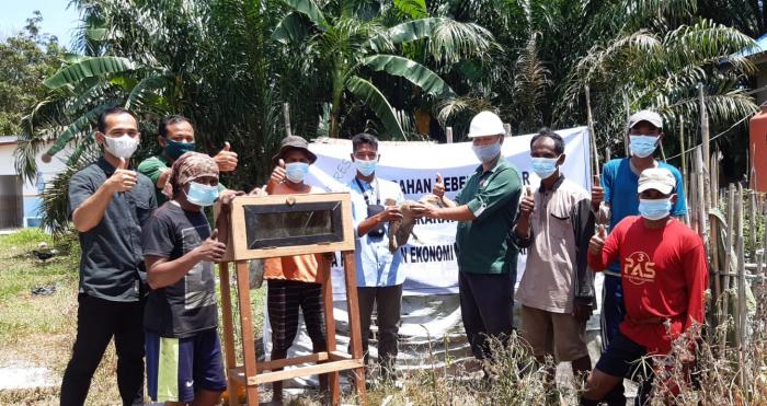 RIAUONE.COM,SIAK- Terima 3000 pcs Masker Dari Program CSR PT Sumatra Global Energi Bupati Alfedri Serahkan ke Tiga Kampung Di kecamatan Sungai Apit