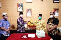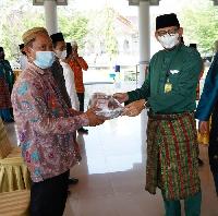 RIAUONE.COM,SIAK- Untuk memutuskan mata rantai penyebaran covid-19 di Kabupaten Siak, Jum'at (27/8/2021), Bupati Siak Alfedri menyerahkan bantuan masker untuk 5 Pondok Pesantren yang ada di Kecamatan Siak.