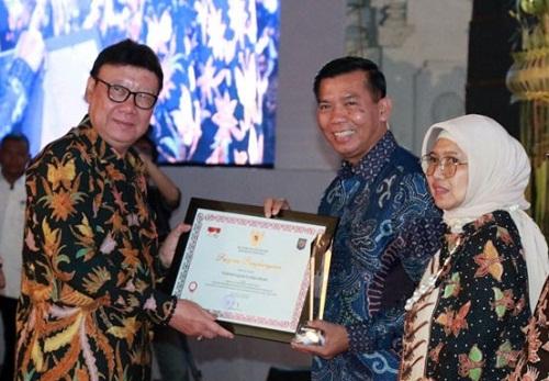 PEKANBARU-Walikota Pekanbaru, Firdaus, kembali menerima anugerah nasional. Kali ini, orang nomor satu di Pekanbaru itu menerima penghargaan Satya Lencana Karyabhakti Praja Nugraha dari Menteri Dalam Negeri (Mendagri), Tjahjo Kumolo.