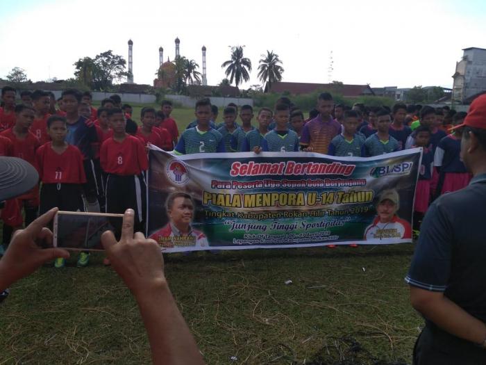 ROHIL, - Liga Sepakbola Berjenjang Piala Menpora RI U-14 resmi bergulir hari ini dikabupaten Rokan Hilir, Sabtu,(6/4/19). Tim yang keluar sebagai juara akan dikirim ke pekanbaru pada bulan 7 mendatang.